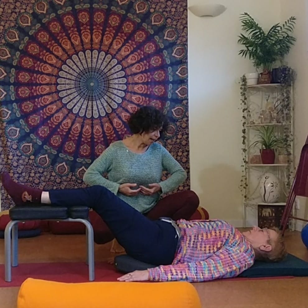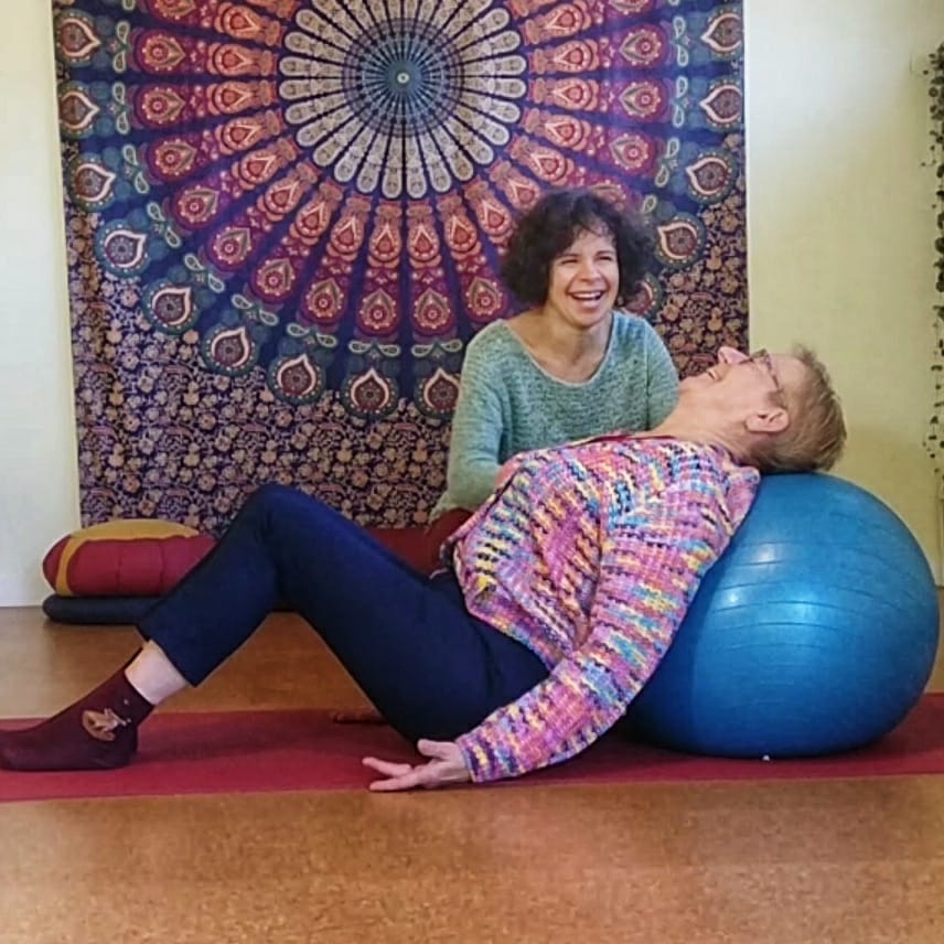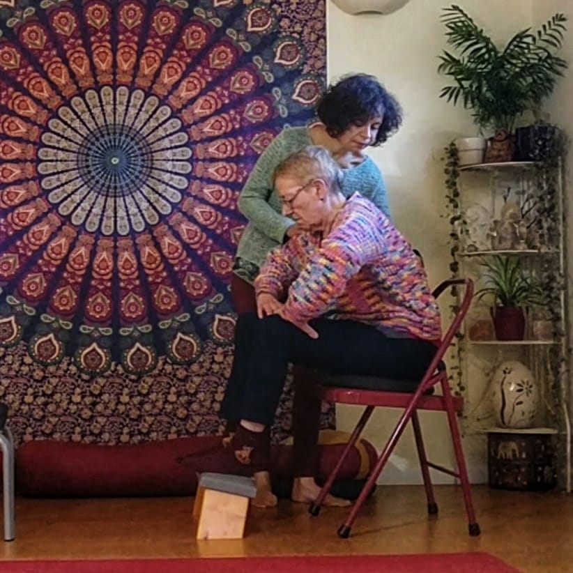 Enfin, la résistance à utiliser du matériel peut également être très dommageable. En effet, un matériel adapté permet de compenser les limites du corps et de soutenir la pratique pour qu’elle reste sans violence. Ainsi pratiquer sur une chaise, c’est éviter des sollicitations excessives lors des passages au tapis et retour debout, tout en continuant le travail précédemment expliqué. Les briques, sangles, élastiques, galettes, coussins sont autant de possibilités de poursuivre un travail musculaire respectueux du corps et de ses limites.